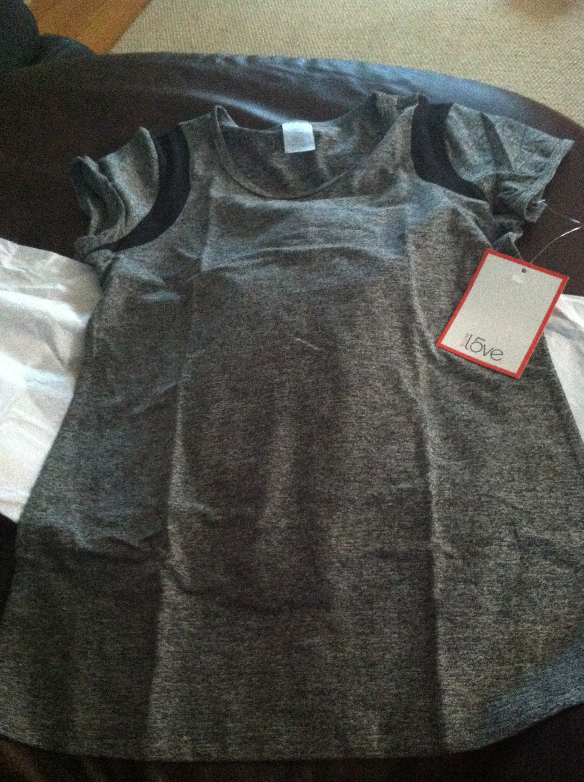 - The top – by 15 Love Apparel – is very soft…I’ve never heard of this company. I looked them up – seems like this brand is sold in boutiques. I noticed that in Massachusetts, they’re sold at Equinox (high-end gym), Exhale Spa (high-end spa), and a couple other high-end (aka expensive) spa/fitness club boutiques. I looked up the avg. cost of a top on this site and it looks like they range between $40-$55. There is very limited selection on 15 love apparel site in terms of tops. The top I got isn’t an exciting piece but I do know when I filled out my quiz I answered that I prefer black/white work-out clothing. I answered that way because I was nervous to get super bright or floral gear…but I guess seeing that I got a grey top with black accents, this is not something I’d buy for myself because I have many things like this and I’m pretty sure I could find a spandex/nylon t-shirt (which I typically wouldn’t wear working out because I prefer tank tops for better mobility) at Marshalls or TJMaxx for under $20, easily