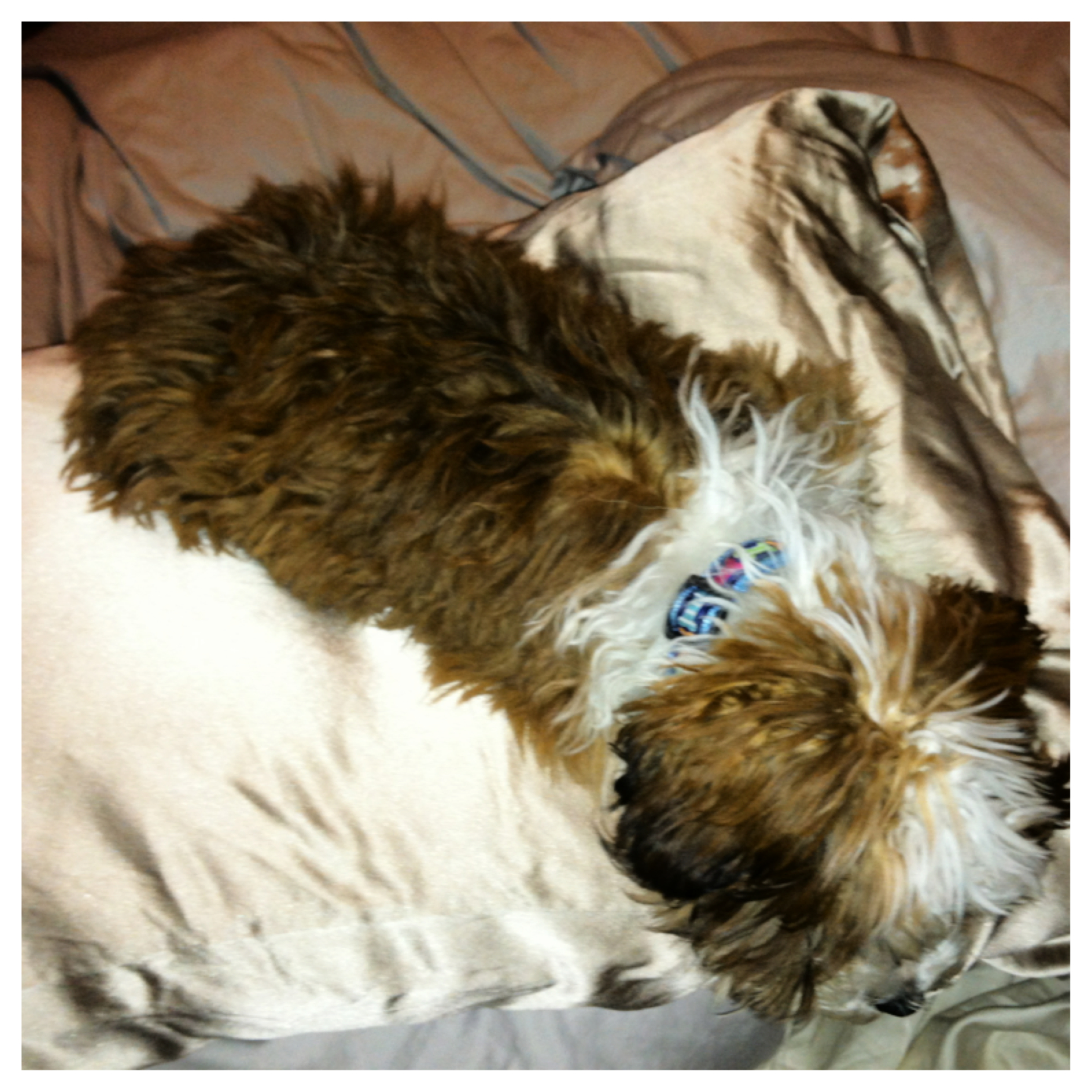 Midge (momentarily) enjoying a snooze on the silk pillowcase