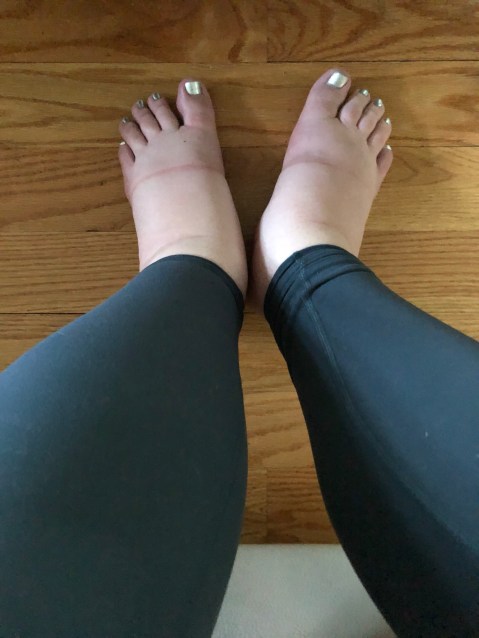 there they are! my super swollen cankles and feet! Those lines are from the only pair of slip on sandals I was able to wear towards the end of my pregnancy!
