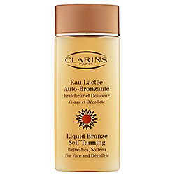 Want a little color? Don’t you dare go tanning (if I had a time machine – I’d go back and yell to my 18 year old self). I’m a big fan of the Clarins self tanning line. Especially this stuff below. Clarins Liquid Bronze Self tanning milk. For face and neck. Natural color. I apply at night after I wash my face and before moisturizer- and I wake up with a bit of {natural} color. Available at most major dept stores. I snagged mine @ Nordstrom.